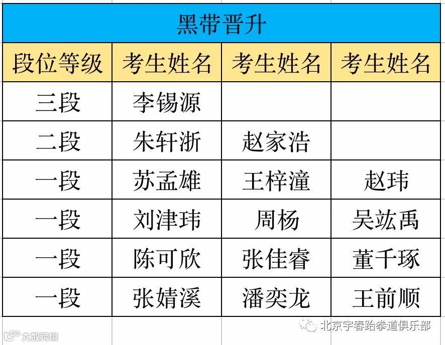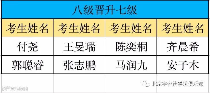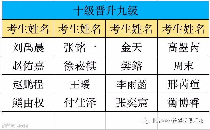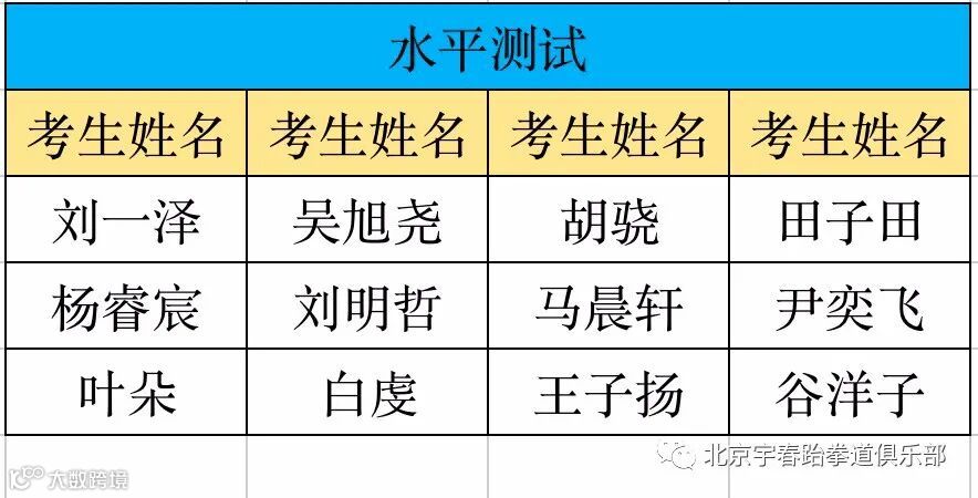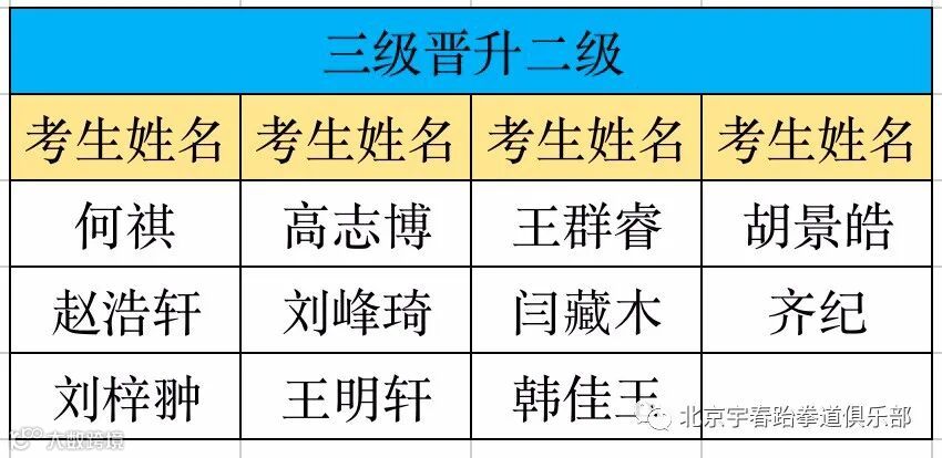 以下为考级通过名单
