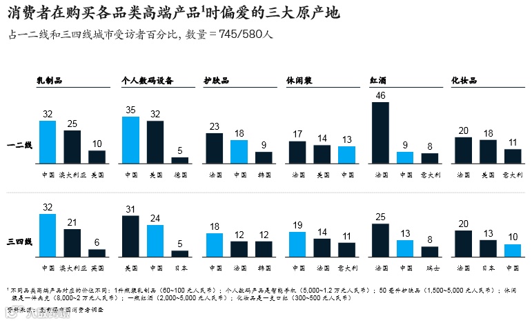 今年的新趋势在于,许多消费者还会在高端产品上选择本土品牌。中国是高端数码产品、护肤品、化妆品和红酒的主要原产地之一。消费者甚至开始对中国时装感兴趣——这里所说的并非普通服装,而是制作精良的设计师品牌,比如中国设计师刘旻、马明和陈安琪等设计的品牌服装。这些时装品牌如今与西方顶尖品牌一同现身于中国奢侈品百货商场。除了奢侈品市场外,之禾等中高档服装品牌也成功迎合了青睐本土时装的消费者需求。