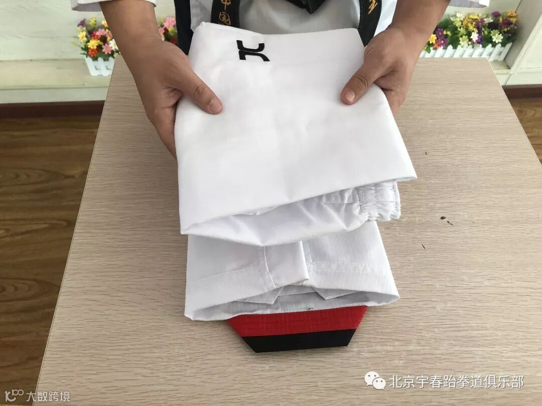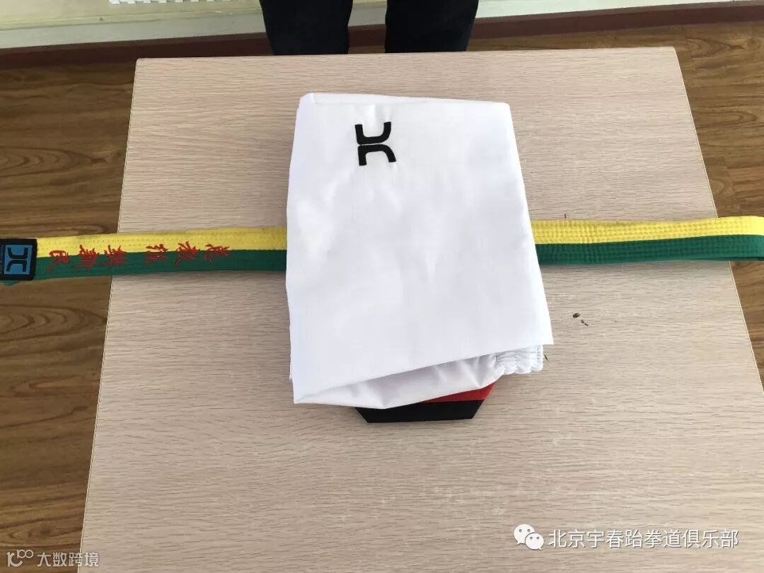 将上下放好的道服放在道带上
