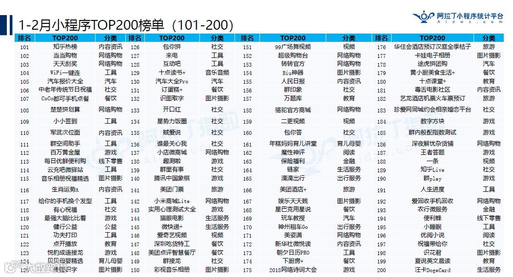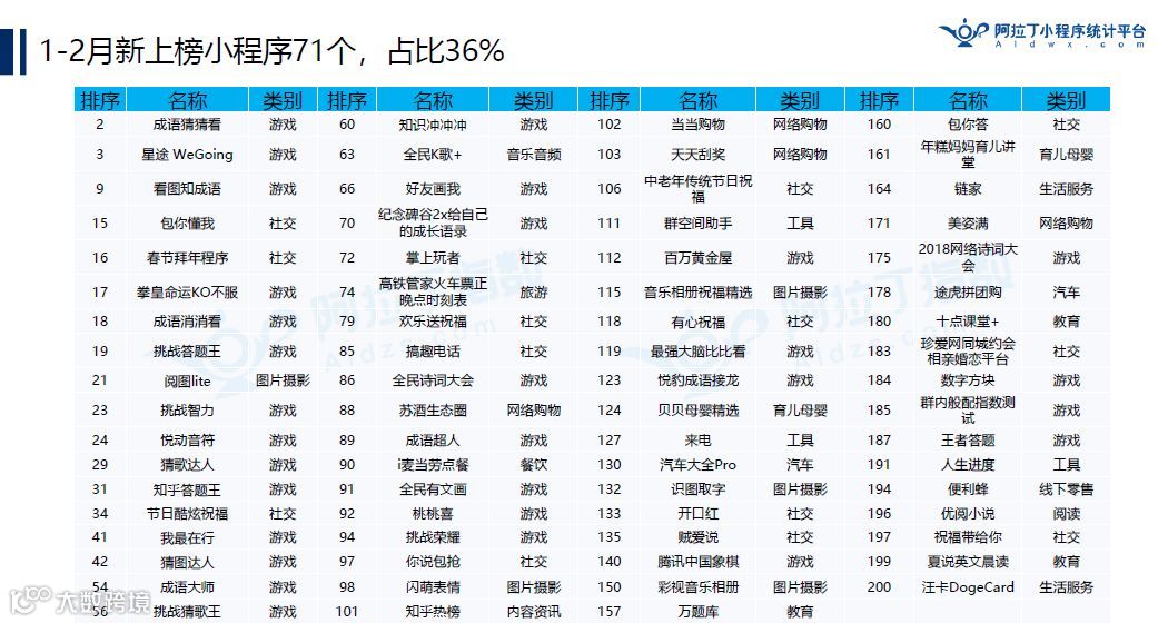 四、阿拉丁2018年1-2月TOP200小程序榜单总结