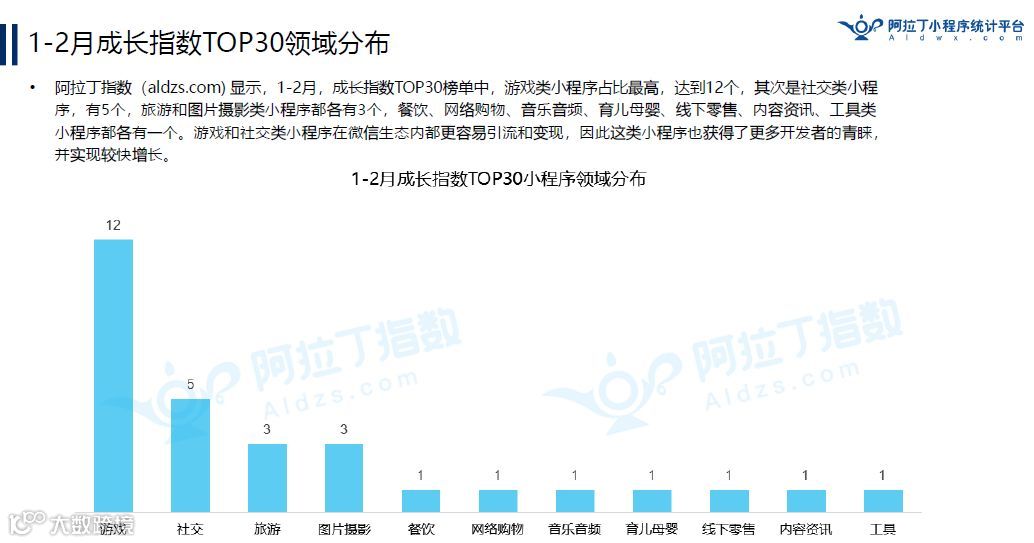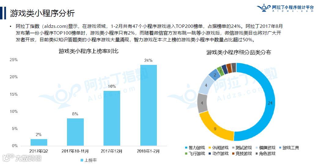 阿拉丁成长指数TOP30榜单中,游戏类小程序占比最高