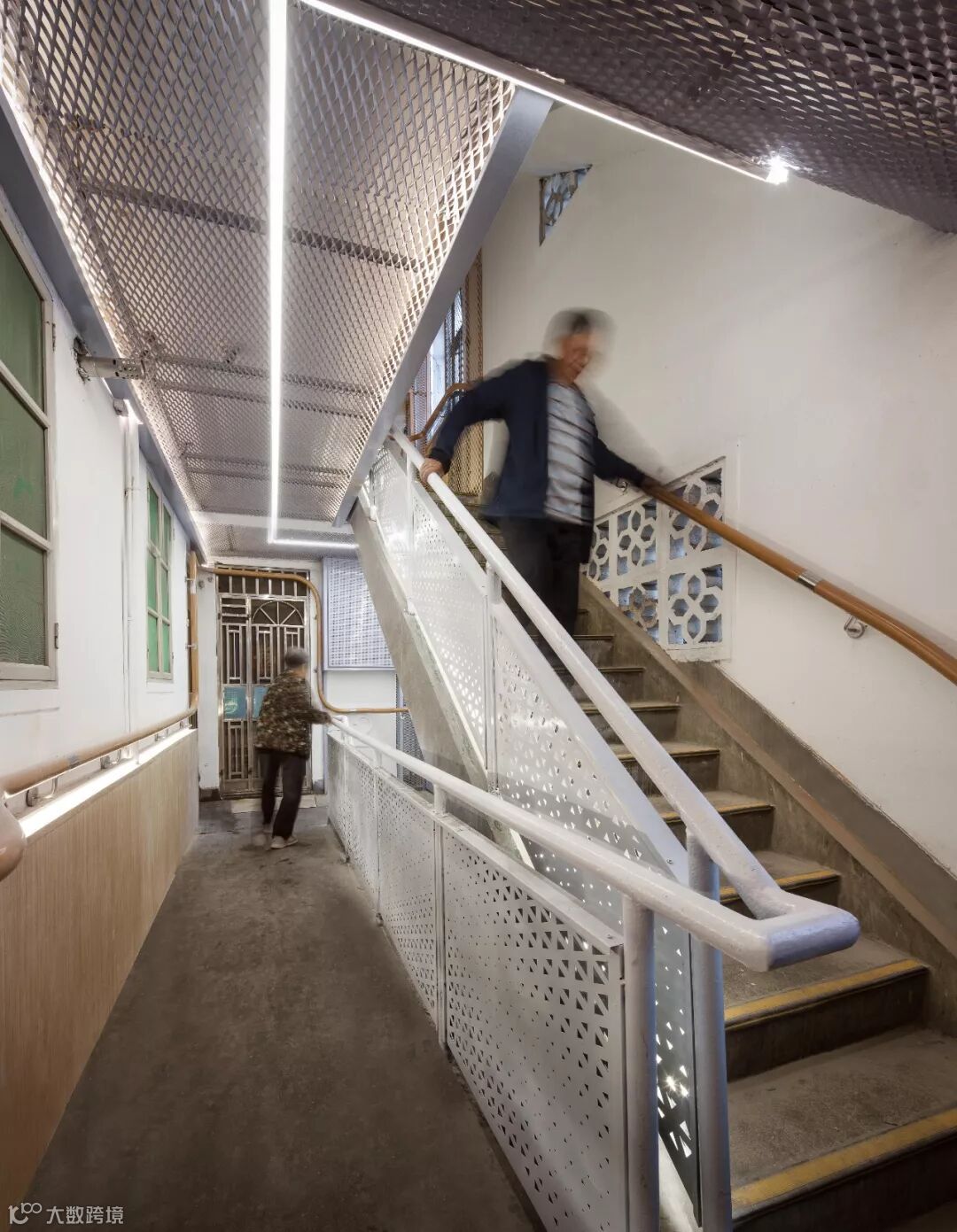 起夜是大多数老人的习惯,感应灯随着老人的起身而发亮。
