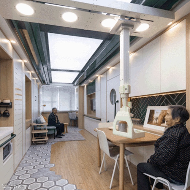 既与整体家具风格搭配,又能让人们观察到老人的状况。