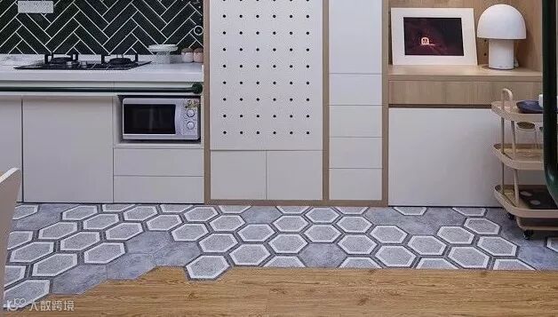 在室内容易沾水打滑的地面,安置了特殊的六边形防滑地板。