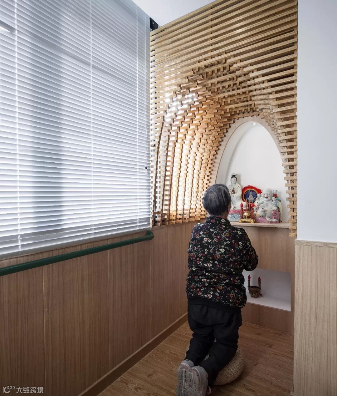 张海翱改造时,特地为夏奶奶,用木构设计了一个层层叠进的佛龛,具有很强的透视感。