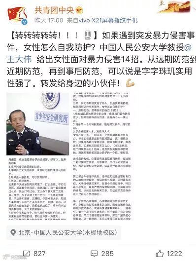 近日,中国人民公安大学教授 @王大伟 在微博发布了“女性面对突发暴力致命侵害14招”,别嫌长,请一定耐心看完它!