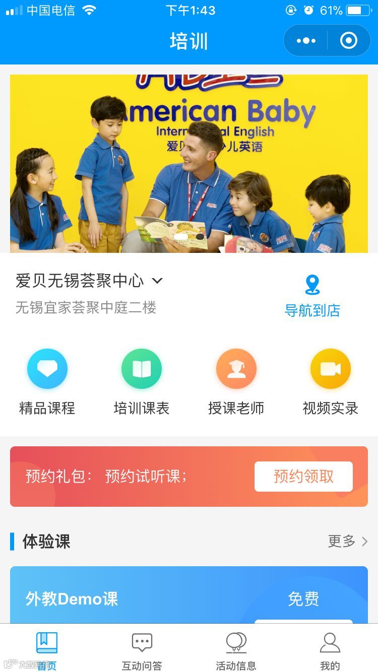 这款小程序一共有三个模块组成:【培训模块】+【互动问答】+【活动信息】。