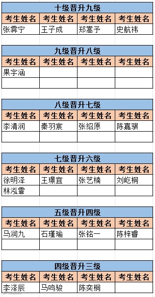 2023年度良乡教学部第二次中国跆拳道协会晋级考试于2023年8月20日在良乡教学部结束。现将晋升名单公示如下: