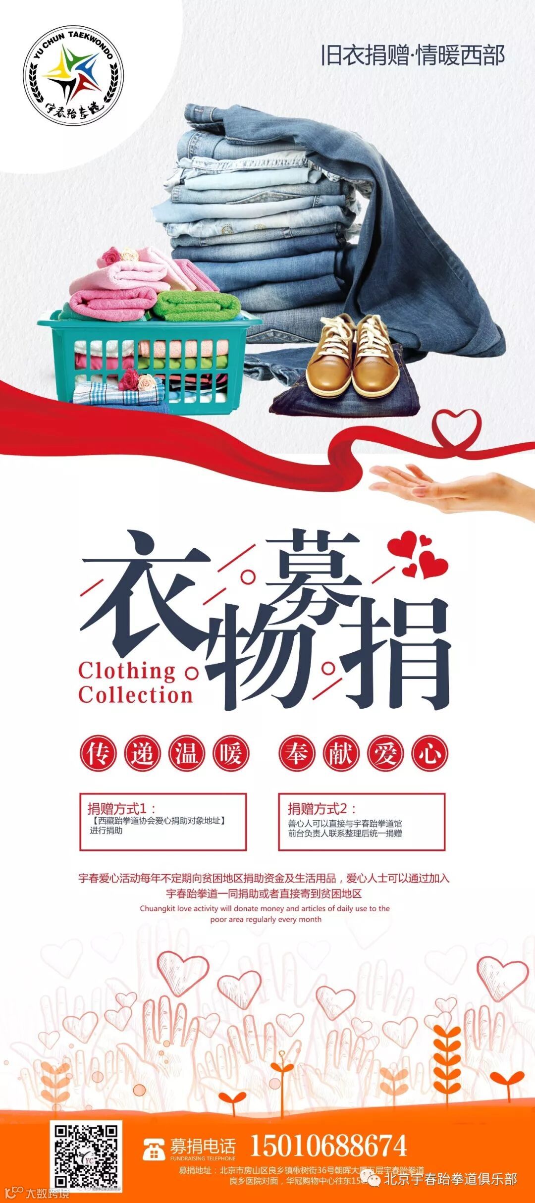 为积极响应西藏跆拳道协会“童心协力”计划全国倡议书,让孩子们共同奉献爱心,宇春跆拳道俱乐部将在12月份组织募捐活动,可以是服装可以是鞋子,只要洗干净了就可以,让不能继续穿着的服装到西藏去温暖其他的小朋友。