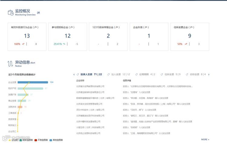 针对企业信息变更、经营情况、法律问题及舆情信息等进行实时监测及预警。
