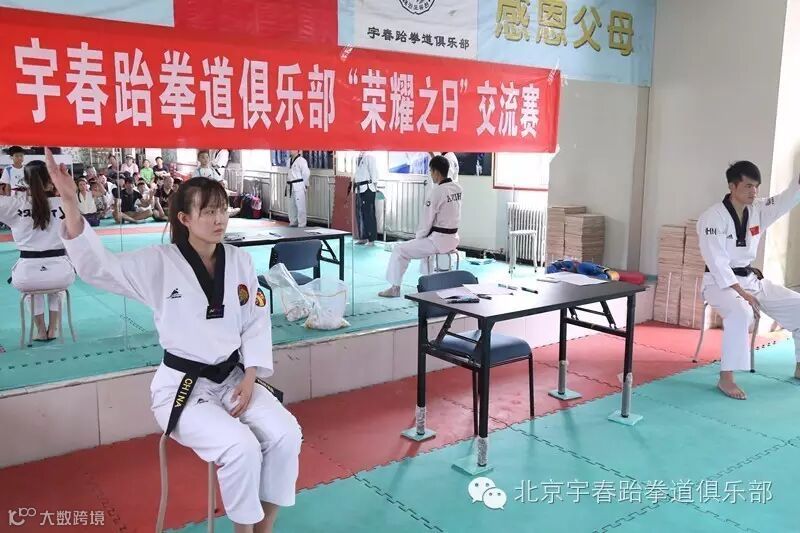 2016年宇春跆拳道俱乐部工作计划中重要的一项内容,俱乐部内部交流暨“荣耀之日”系列交流赛首战的比赛,于6月11日端午假期第三天,在良乡教学部举行,共有良乡教学部、西红门教学部、以及合作教学单位的40名学员以及众多家长的前来参与,学员覆盖腰带级别从黑带二品到绿带,角逐品势、特技、击破、竞技四个大项的桂冠。由国家级裁判程飞翔教练领衔专业裁判组,另由8名学员家长组成大众评审团,共同检验参加学员的水平状态。