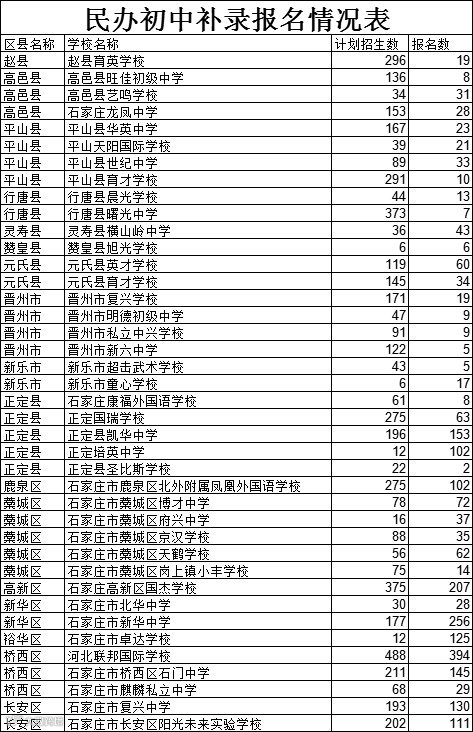 全市民办小学、初中补录报名工作于7月29日-7月30日的7:00-21:00进行,有意愿报名的家长可通过石家庄市教育局官方网站(http://sjzjyj.sjz.gov.cn)登陆石家庄市义务教育招生入学服务系统进行报名,今天将是补录报名的最后一天,请家长抓紧时间进行报名,切勿错过报名时间。石家庄外国语学校小语种生、英语生已于昨天21:00结束报名,小语种报名人数为549人,英语生报名人数为650人,请未通过的家长于今天上午12:00前及时修改信息并上报。下面是截止到7月29日21:00的报名数据,供家长参考。