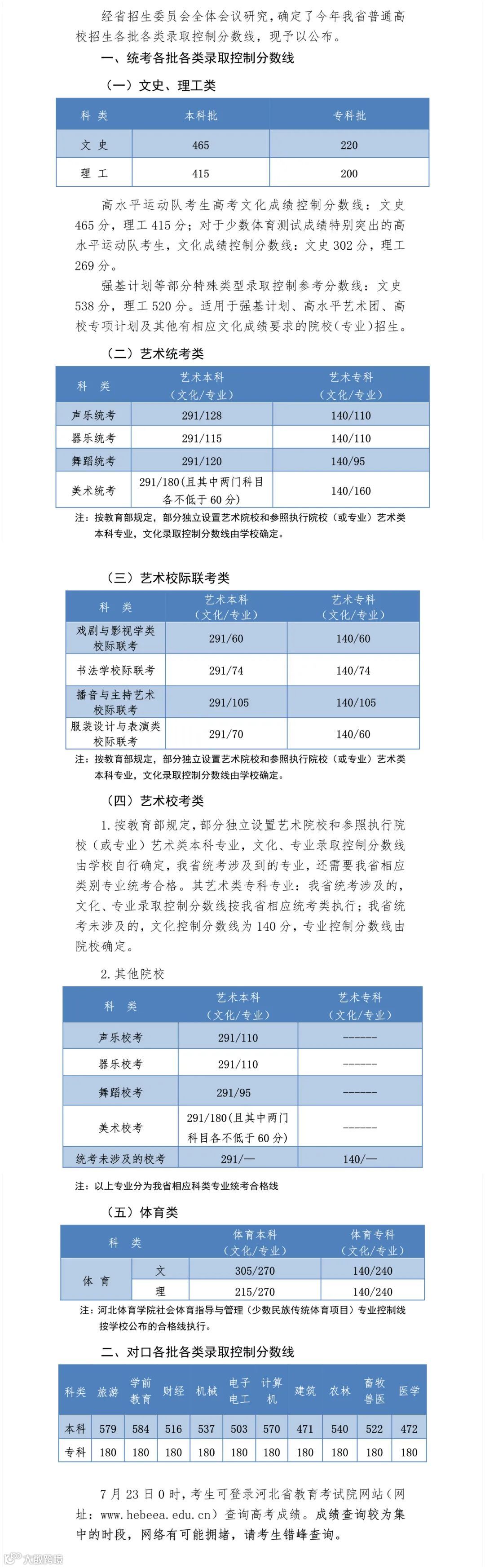 近5年河北高考分数线