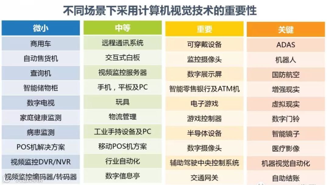 此外,在机器人、手持终端以及零售业,图像识别、物体检测等计算机视觉应用也在崛起。IDC 分析了计算机视觉技术在各应用场景下的价值。如下图所示: