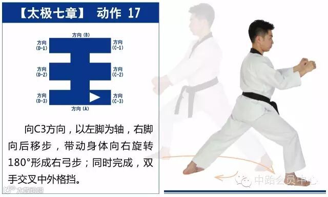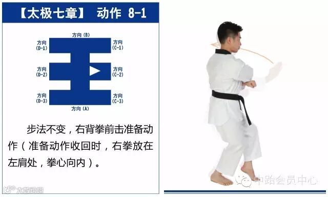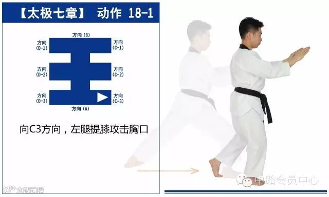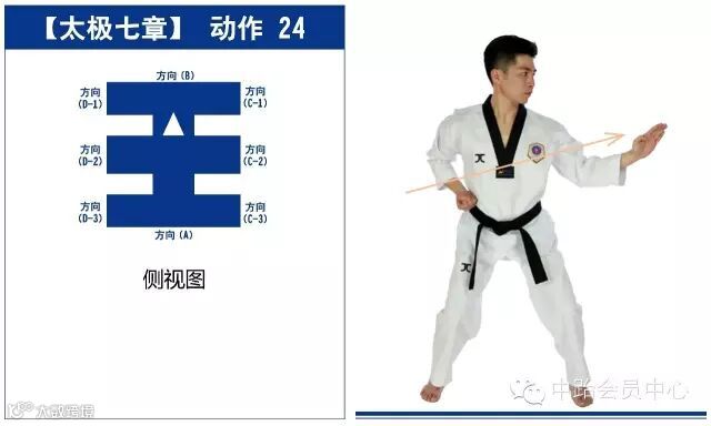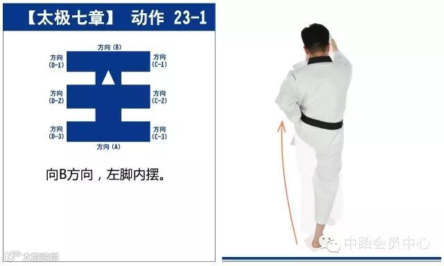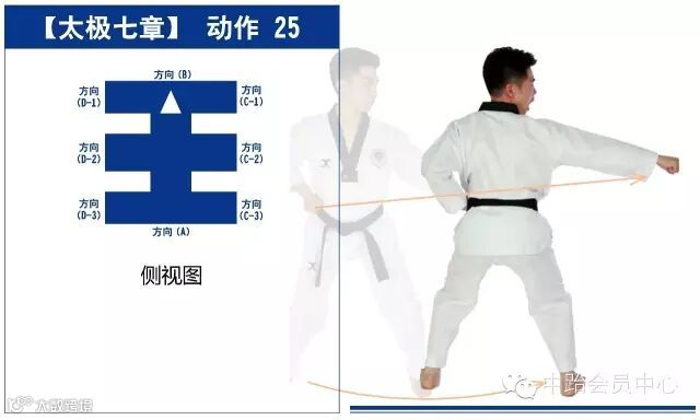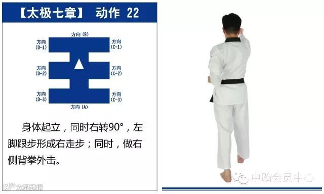 太极七章的进行线路最终形成一个“王”字,从起点开始,最终回到起点,共25个动作。