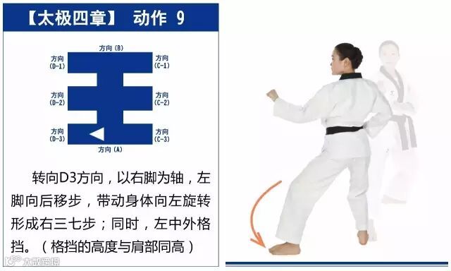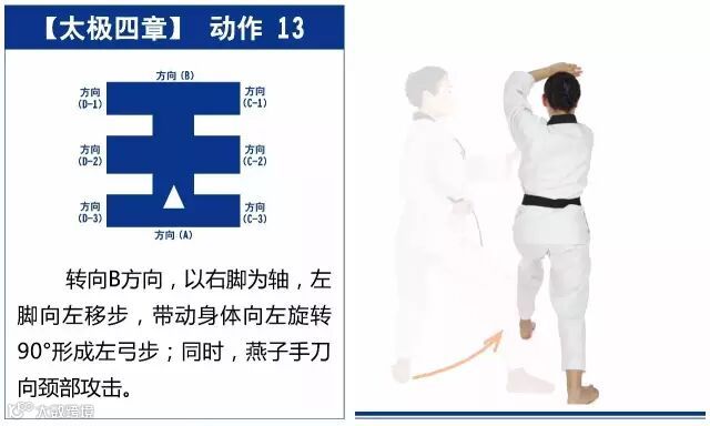 新的动作包括手刀格挡、燕子手刀颈部攻击、平手尖刺击、中外格挡、背拳前击、腿法是侧踢等,适合跆拳道5级修炼者练习。