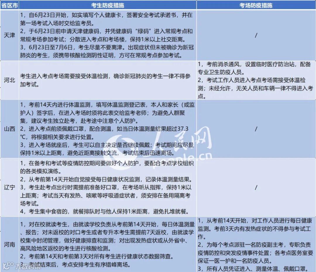 在教育部做出总体规划部署的同时,各地主管部门也根据地区实际情况制定了本地高考防疫政策。