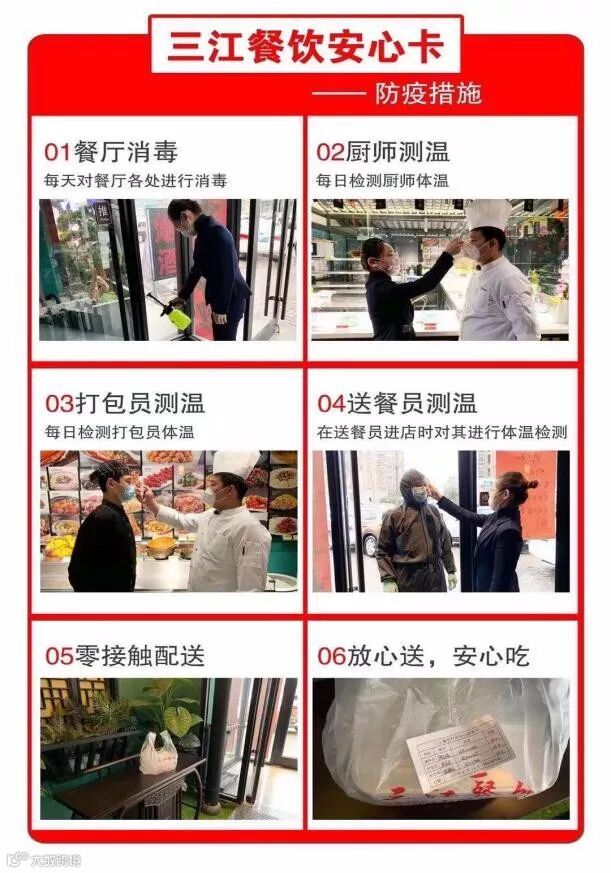 发布预案;禁止堂餐,倡导“无接触”服务,加强网络餐饮管控;加大集中用餐单位监管,降低风险;每日更新营业餐饮名单,并加大检查力度,确保复工用餐需求和食品安全。