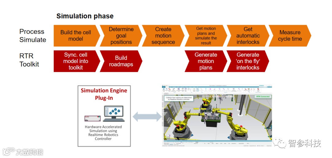 智参科技 作为专业提供 全流程数字孪生解决方案 的创新型公司,基于Realtime的运动规划创新技术,结合西门子 Process Simulate,集成开发了 实时机器人技术(RTR)进行自动运动规划解决方案,以此解决不同工业场景中机器人应用产生的问题。