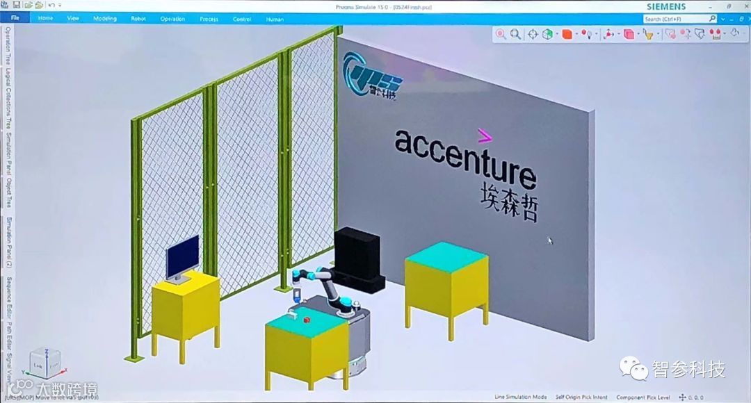 埃森哲通过引入数字孪生系统完成工艺模拟、优化与选定,调度复合型机器人来解决多工位间物料的转运及生产操作,结合3D智能视觉系统完成异常情况的检测和自动修复。在此项目实施中,我们负责提供PLC控制和仿真模拟技术支持。