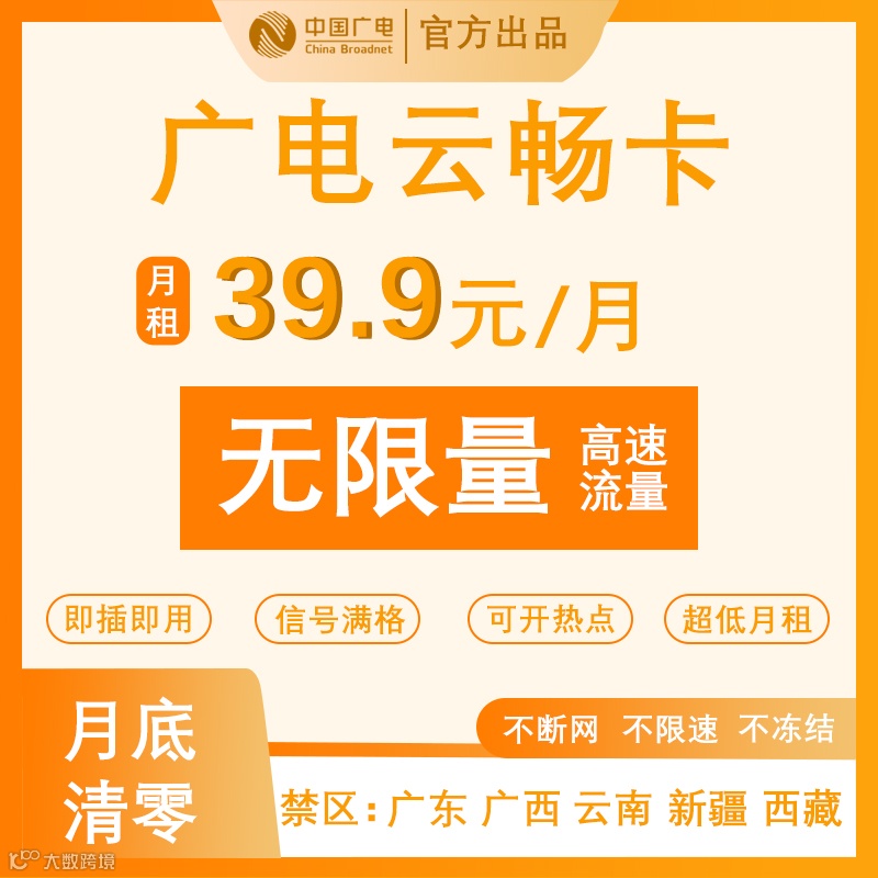 无限量高速流量,不断网、不冻结,超低月租,可开热点,流量月底清零。