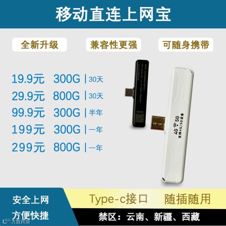 移动直插式上网宝,多套餐可选,随插随用,轻松联网!type-c接口,信号稳定,性价比高,商城有专用转接线可自行了解!