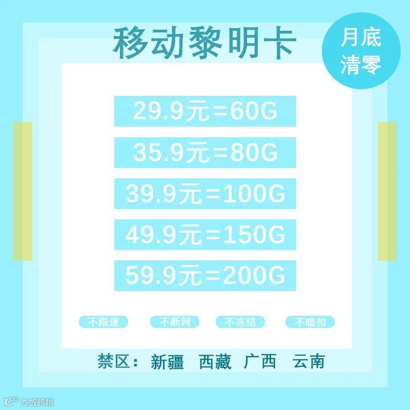 低价套餐,高速流量,稳定不断,不限速,全国通用流量,流量月底清零。