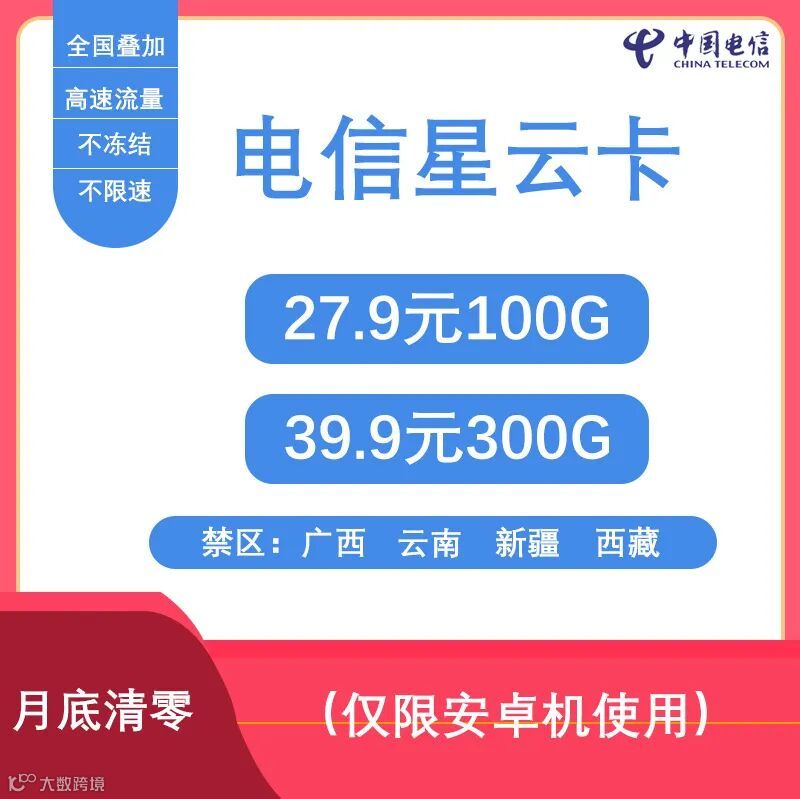 多种套餐任选,支持5G,流量卡无通话短信功能,不限速!无需预存,稳定售后,稳定使用,数量有限!仅限安卓机使用!