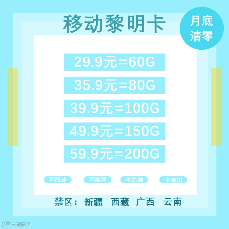 月底清零卡:每月1~25号期间续费次月套餐,否则25号后会停机断网,无法正常使用!