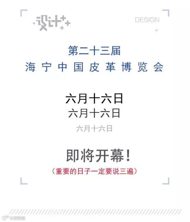 作为一场大型年度皮革盛会,6月16日-21日期间众多精彩活动即将轮番上演:2016/17中国国际皮革、裘皮服装流行趋势发布,海宁中国皮革/裘皮服装展,第九届中国皮革时尚周,以及2016中国设计趋势高峰论坛、2016海宁·中国微商高峰论坛等主题活动。(ps:文末有链接,感兴趣的粉丝可以查看PIPI酱之前的文章)