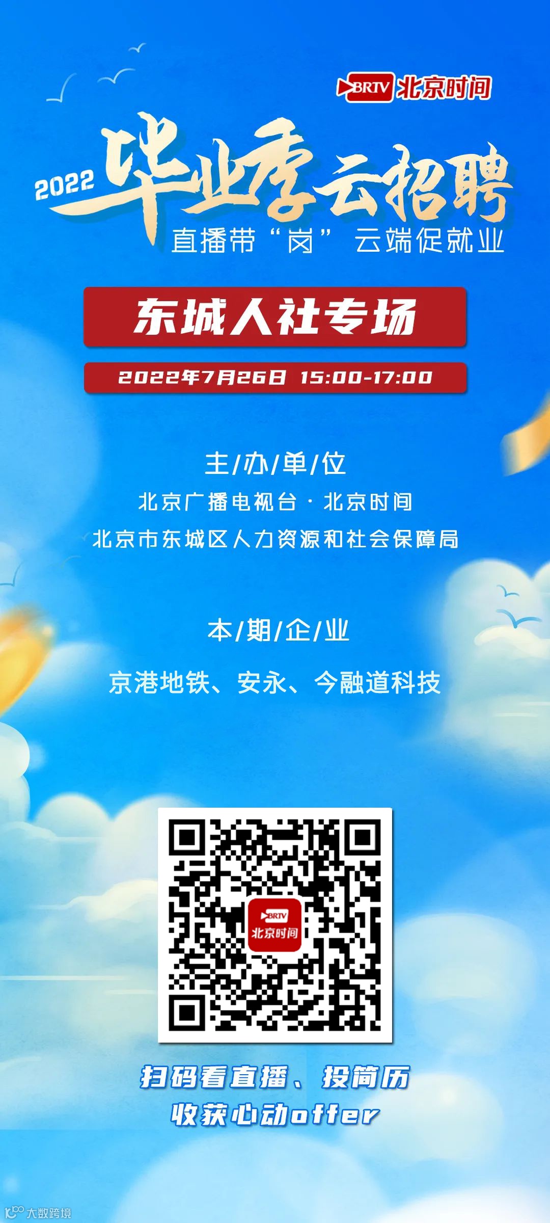 7月26日,北京广播电视台北京时间携手北京市东城区人力资源和社会保障局打造的“毕业季云招聘•东城人社专场”迎来第六场直播。今融道(北京)科技有限公司人力资源部携新媒体运营、产品运营、市场营销、前端开发工程师的岗位做客直播间。