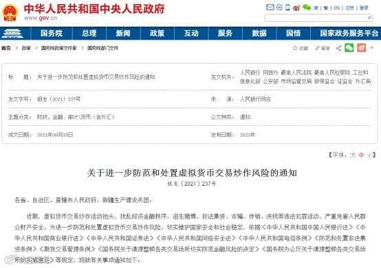 2021年,中国人民银行联合多部门下发《关于进一步防范和处置虚拟货币交易炒作风险的通知》,严厉打击虚拟货币交易炒作。
