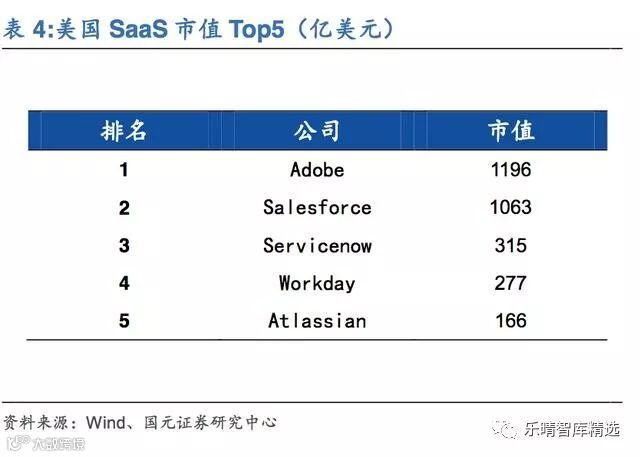 2017年PaaS市场规模达到128亿美元,同比增长28%,预计未来仍将保持稳定增长;SaaS规模达到656亿美元,同比增长26.64%,预计未来SaaS市场增速逐渐趋缓。