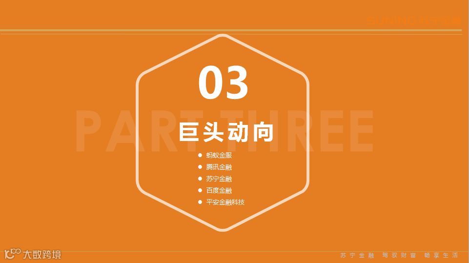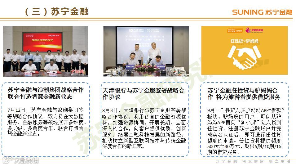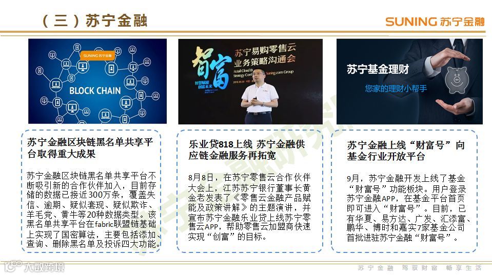 在场景搭建层面,3季度互金巨头开始积极布局新场景,例如苏宁金融在小微企业金融、旅游金融等方面持续发力,互联网金融的触角进一步向实体经济延伸。