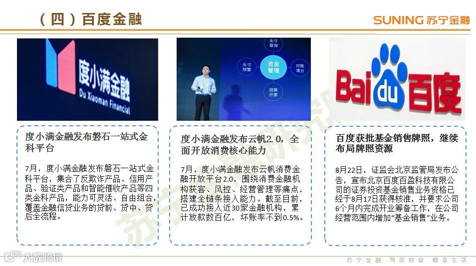 在牌照布局方面,3季度为应对监管要求,互金巨头继续完善金融牌照的布局,为未来储备更多的业务空间,特别是与基金牌照相关的理财业务领域。