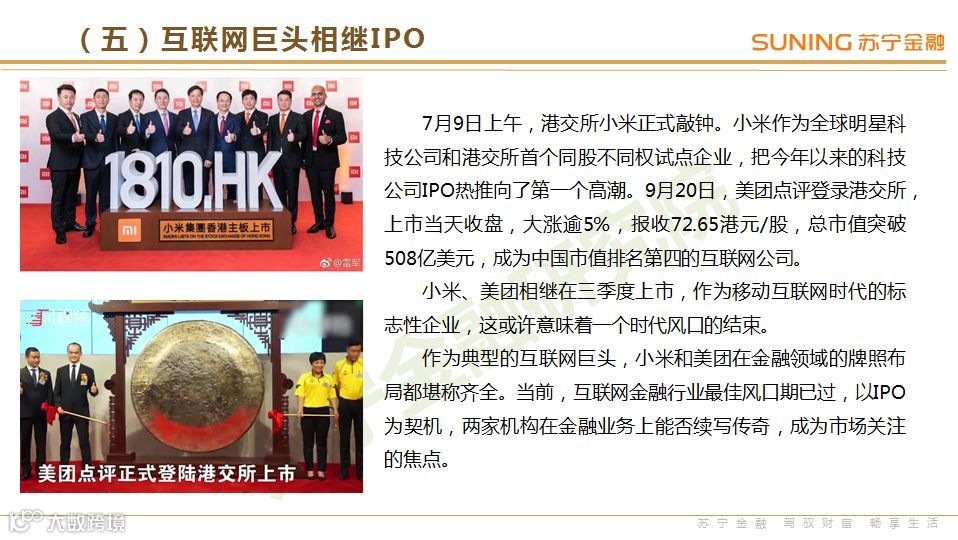 互联网巨头相继IPO:小米、美团相继在三季度上市,作为移动互联网时代的标志性企业,这或许意味着一个时代风口的结束。