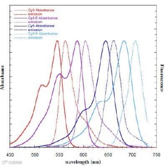 ■ 图2. 荧光染料光谱图(Cy家族) ■