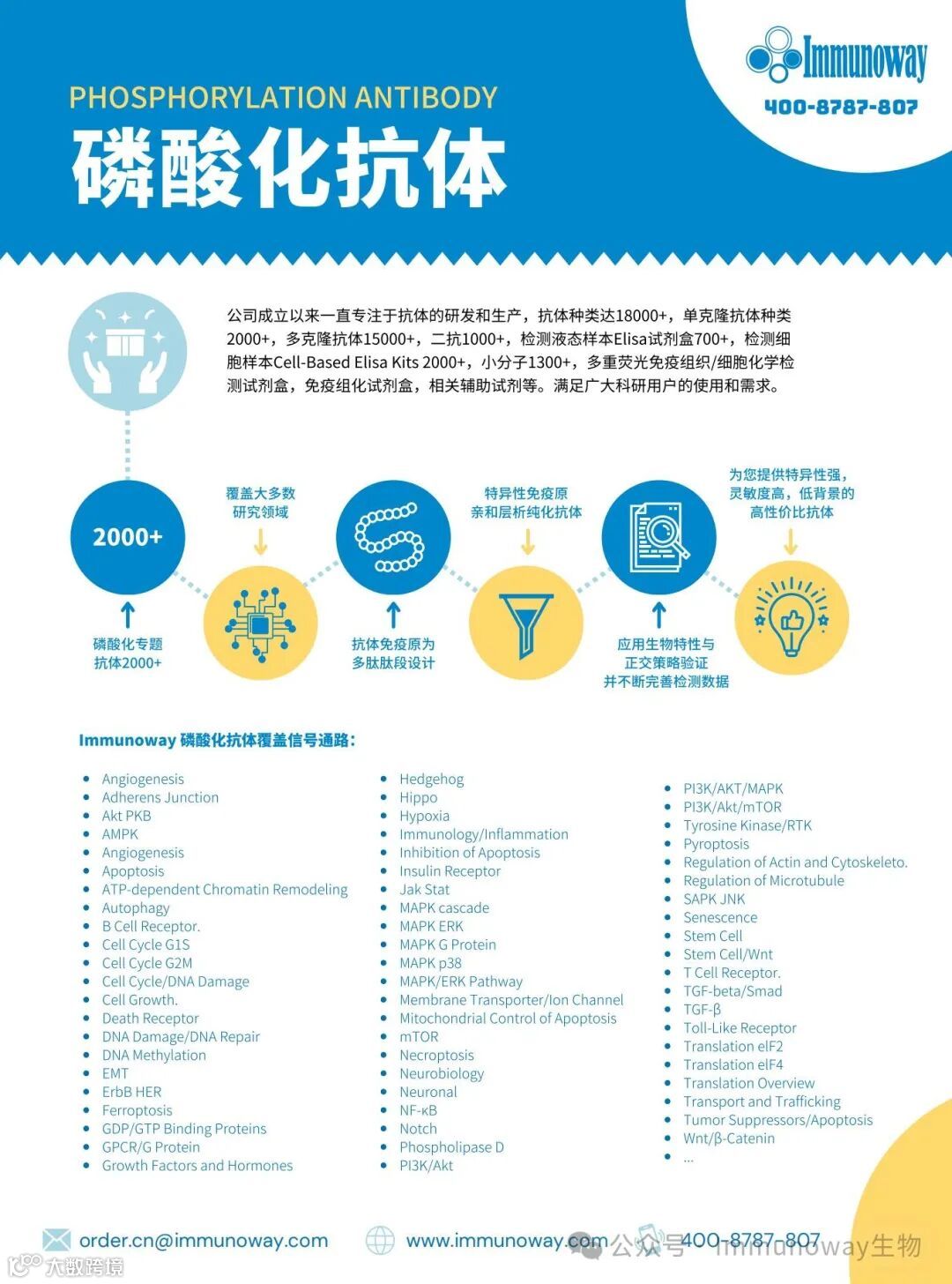 磷酸化等修饰性抗体,覆盖数百条信号通路;