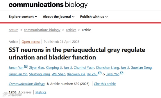 排尿作为兼具生理排泄功能与社会行为意义(如动物信息素通讯)的复杂过程,其神经调控依赖于中枢系统对膀胱感觉与环境信号的整合,但具体细胞与环路机制尚不明确。近期一篇发表于《communications biology》上的文章,通过逆行跨突触追踪技术定位l/vlPAG对膀胱/尿道括约肌的支配,并整合细胞特异性活动记录(光纤光度法)、光遗传学/化学遗传学操控及膀胱-括约肌功能检测,首次揭示l/vlPAG SST⁺神经元经PAG-PMC通路调控排尿的机制,为排尿障碍治疗提供新靶点。