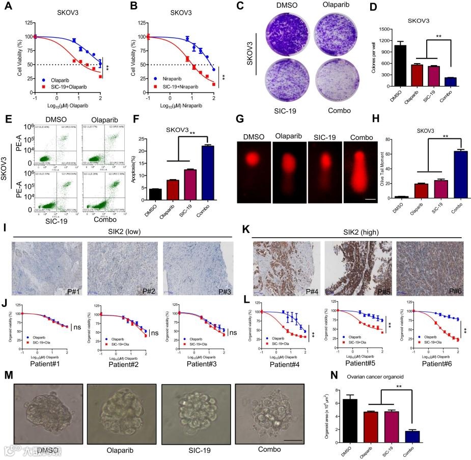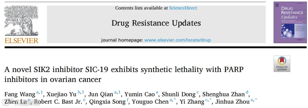 鸣谢:Wang F, Yu X, Qian J, Cao Y, Dong S, et al. A novel SIK2 inhibitor SIC-19 exhibits synthetic lethality with PARP inhibitors in ovarian cancer. Drug Resist Updat.2024 May;74:101077.