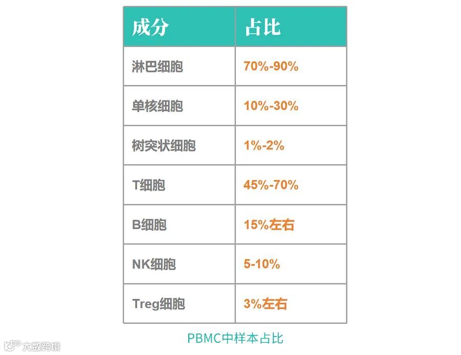 PBMC(外周血单个核细胞)仅包括白细胞中的淋巴细胞,NK细胞,单核细胞等。