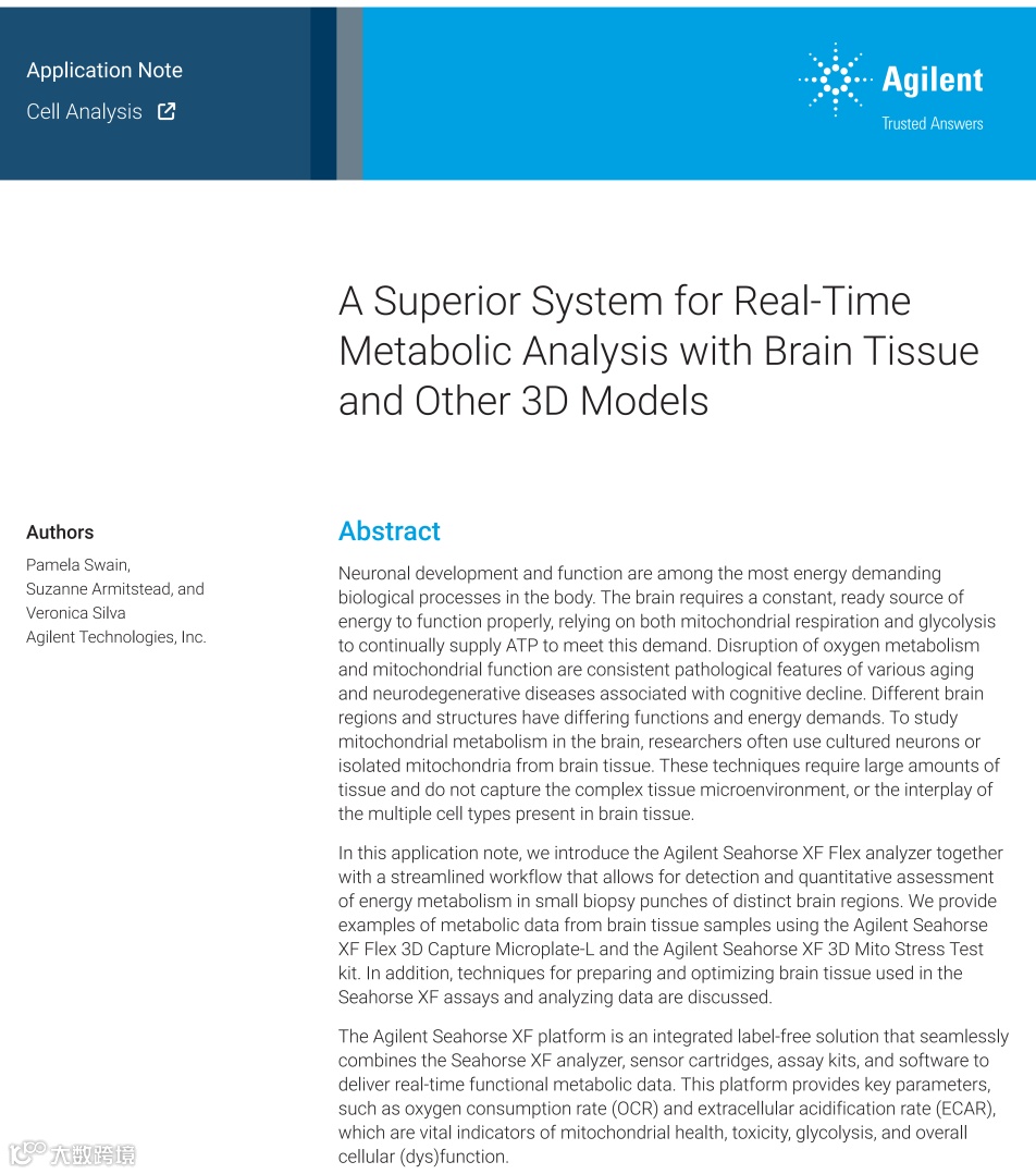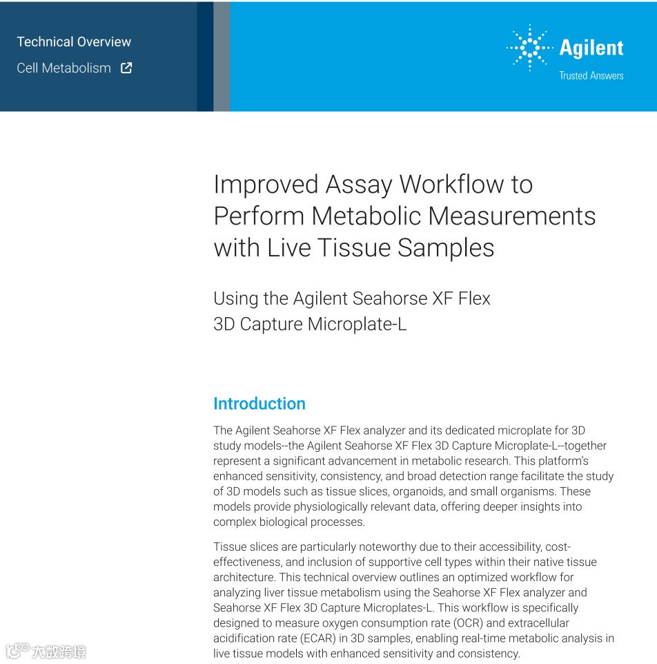 参加我们的网络研讨会,深入了解全新安捷伦 Seahorse XF Flex 分析仪如何彻底改变 3D 模型系统的实时代谢分析。这款前沿系统可与经优化的孔板和试剂无缝集成,从而提供更出色的灵活性、定制化工作流程和更高的灵敏度,帮助研究人员实现代谢研究新突破。