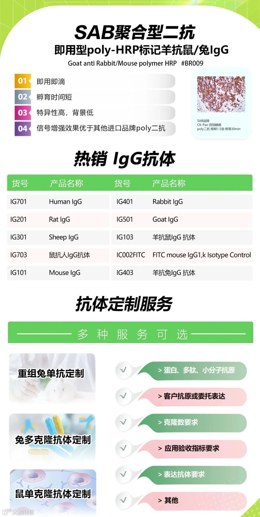 公司产品领域涵盖分子生物学、免疫学、血液学、肿瘤研究、信号通路、药物筛选、干细胞研究、神经生物学、表观遗传学等等,为用户提供系统性的科学研究完整解决方案,成为众多研究者们可以信赖的选择。