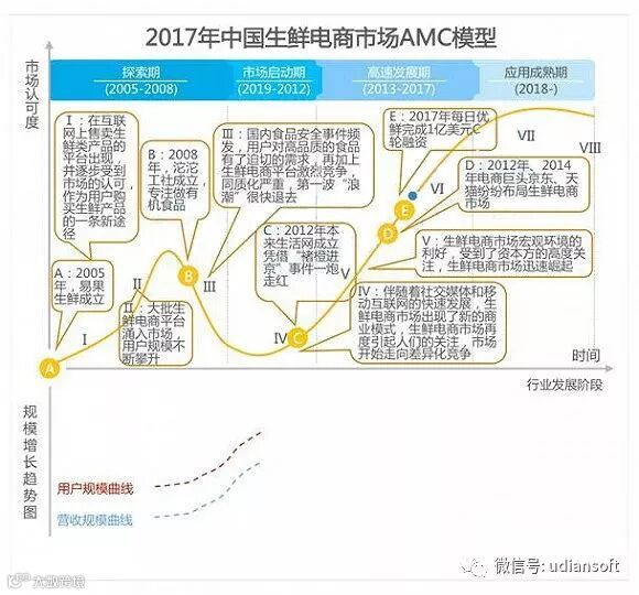 目前,生鲜电商即将或已经进入应用成熟期,市场格局将基本确定,用户规模增速减缓,市场进入稳步增长阶段。另外,行业领先的生鲜电商企业将在用户数据深度挖掘、生鲜品类标准化和冷链物流及仓储技术提升等方面开始新的探索和商业模式的创新。