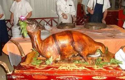 将即将临盆的母羊投入炭火中烧烤,当炭火将母羊全身烤熟之后开膛破腹把乳羊取出,据说是皮酥肉嫩,味道鲜美。