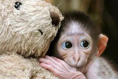 一只非常可爱的猴子牵出,据说那是专门食用的猴儿,头比较大。