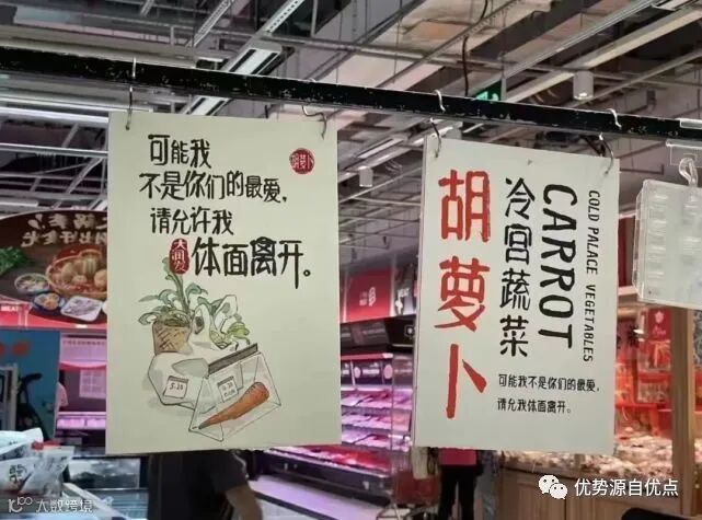 平平淡淡的蔬菜,却是人们生活中最重要的物资之一。从这些宣传语中可以看到创作者的才华,真是句句戳中人心呀!