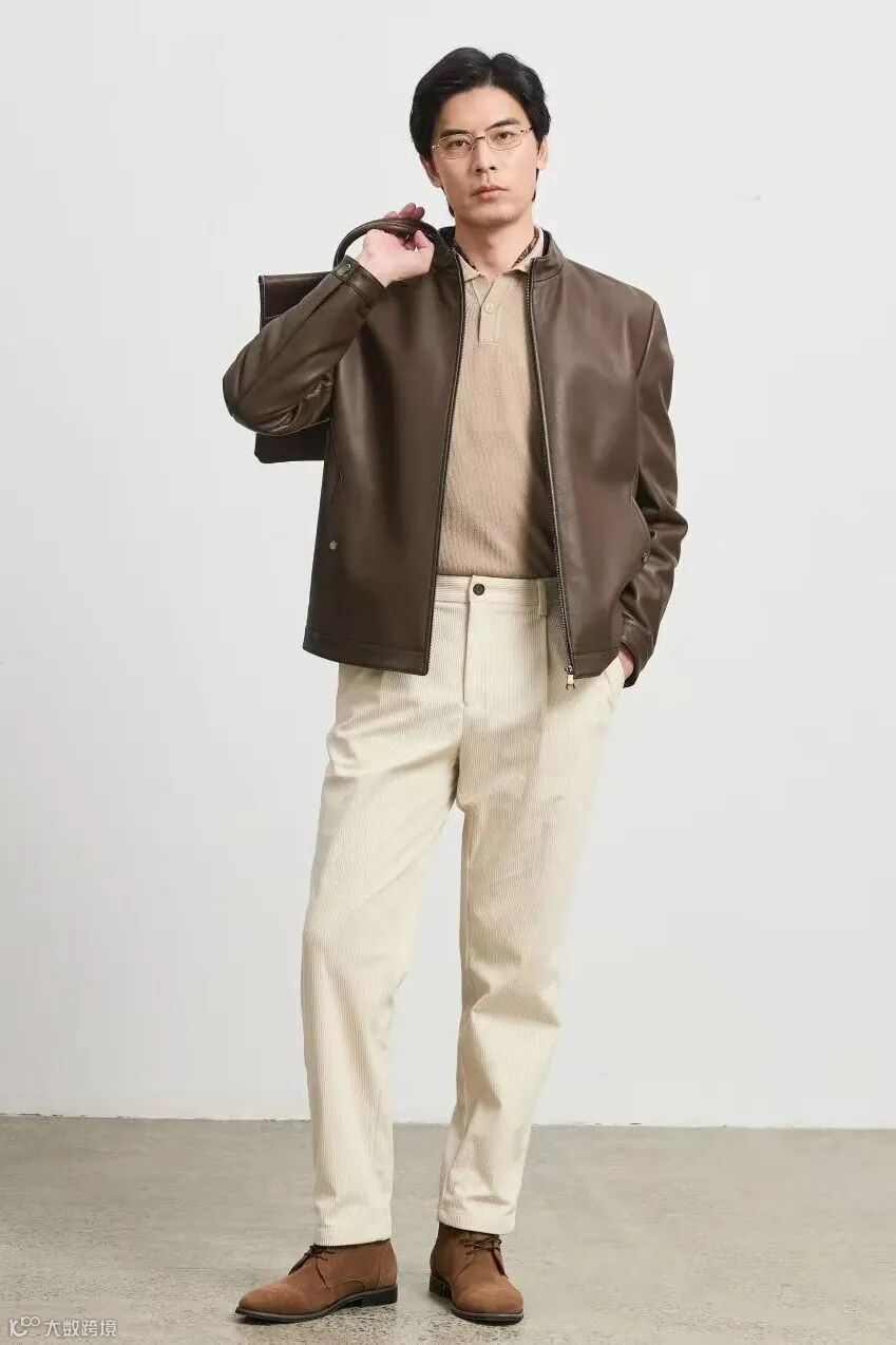 削弱皮衣的硬朗,使整体风格更加休闲舒适