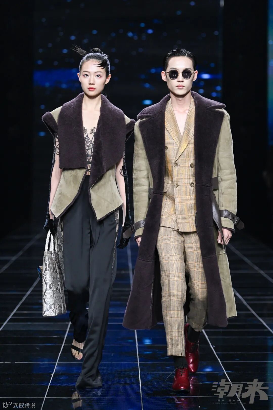 星河漫步,时空交汇,神秘野性主义迸发。在电光紫、宝石蓝、极光绿的色彩趋势中,探索可持续发展的环保皮革,展示对地球未来的责任感和关怀。
