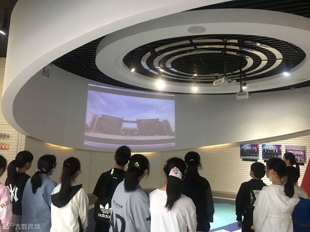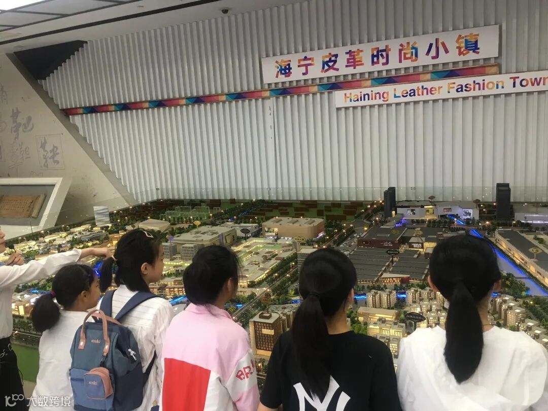 一走进皮革博物馆,小学员们就被巨大的海宁皮革城时尚小镇沙盘吸引了目光。
